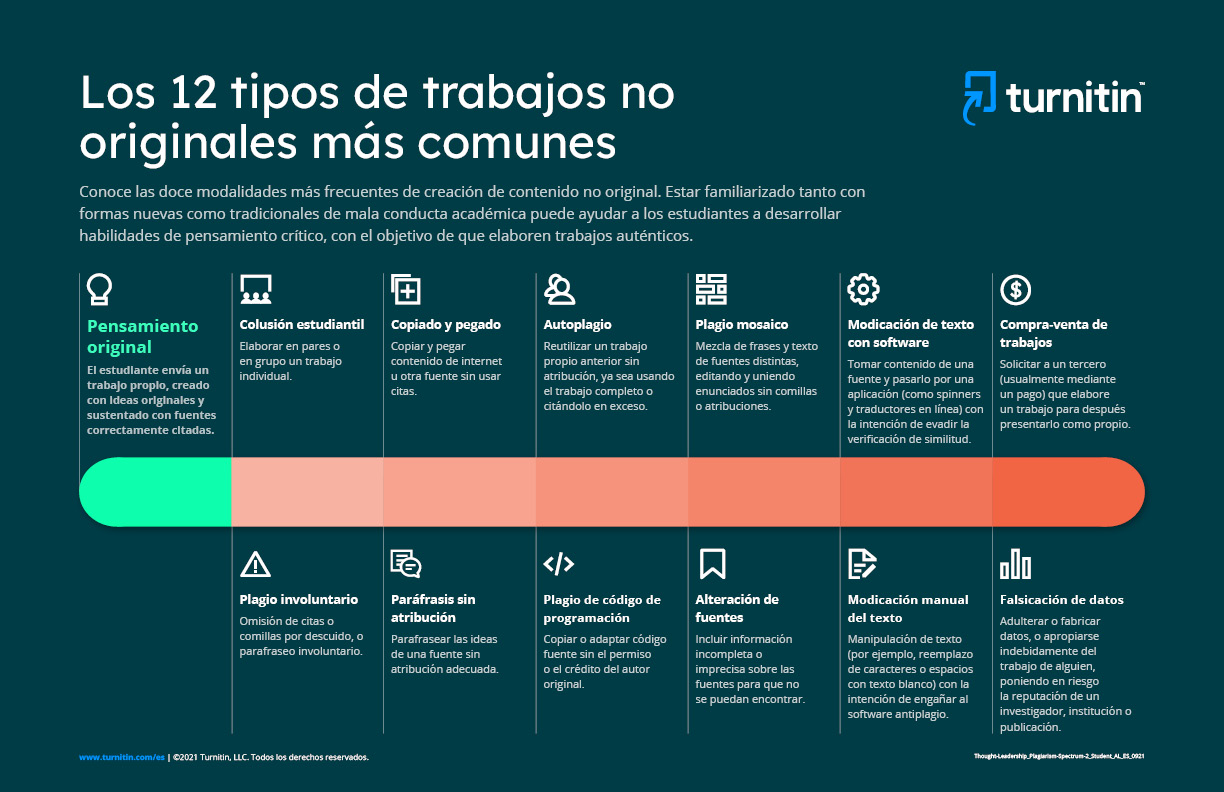 Descarga nuestra nueva infografía con los 12 tipos de trabajos no originales más frecuentes, así como una guía para educadores con estrategias para enfrentarlos.