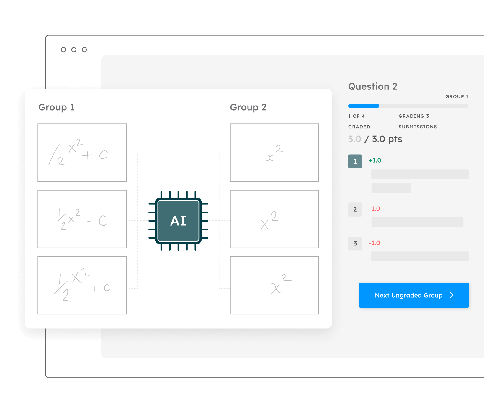 La tecnología vanguardista de IA de Gradescope agrupa de manera automática las respuestas similares, eliminando las redundancias y permitiendo una retroalimentación más coherente y de alta calidad.