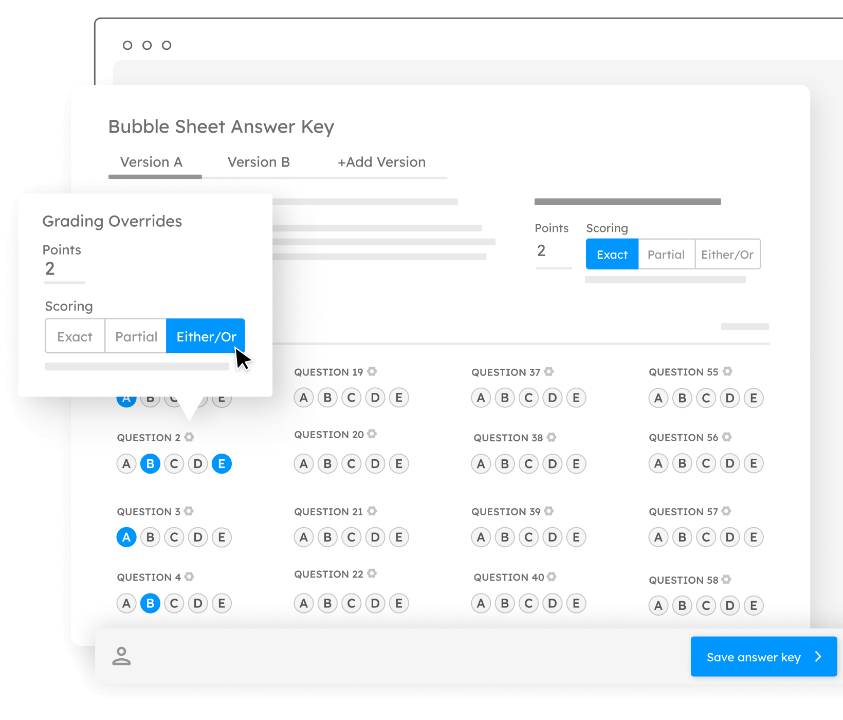 Crea distintas versiones de exámenes de opción múltiple y califícalos automáticamente apenas sean entregados por los estudiantes, con estadísticas avanzadas.