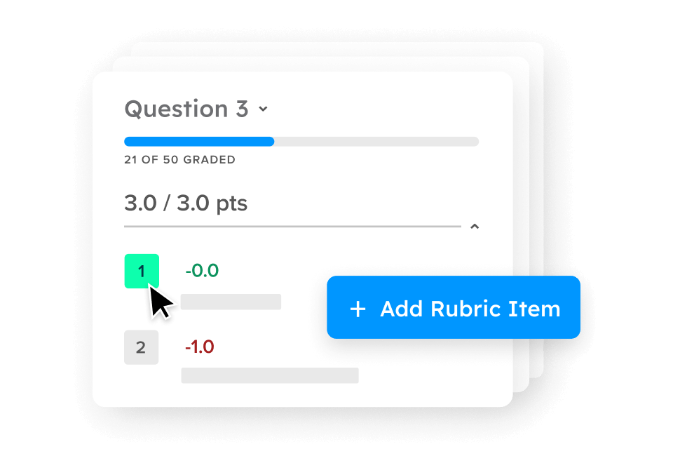 Las rúbricas de Gradescope pueden ser creadas antes de calificar o sobre la marcha. Además, pueden ser construidas de manera colaborativa y ajustarse en cualquier momento de la calificación. Ofrece a tus estudiantes retroalimentación detallada en un solo clic.