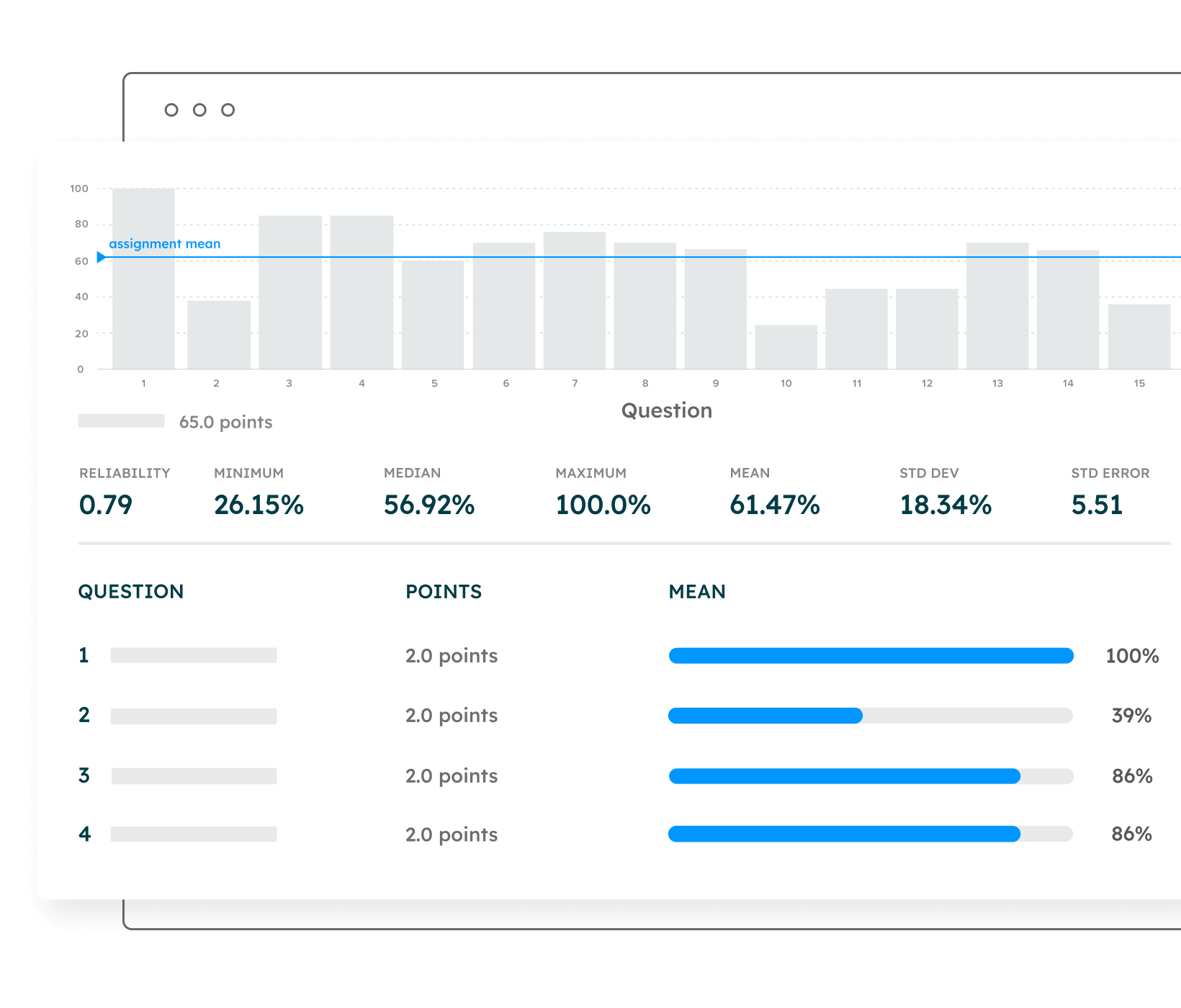 Las estadísticas entregan a los Instructores información inmediata y procesable sobre el progreso de los estudiantes para mejorar los resultados de la enseñanza y el aprendizaje.